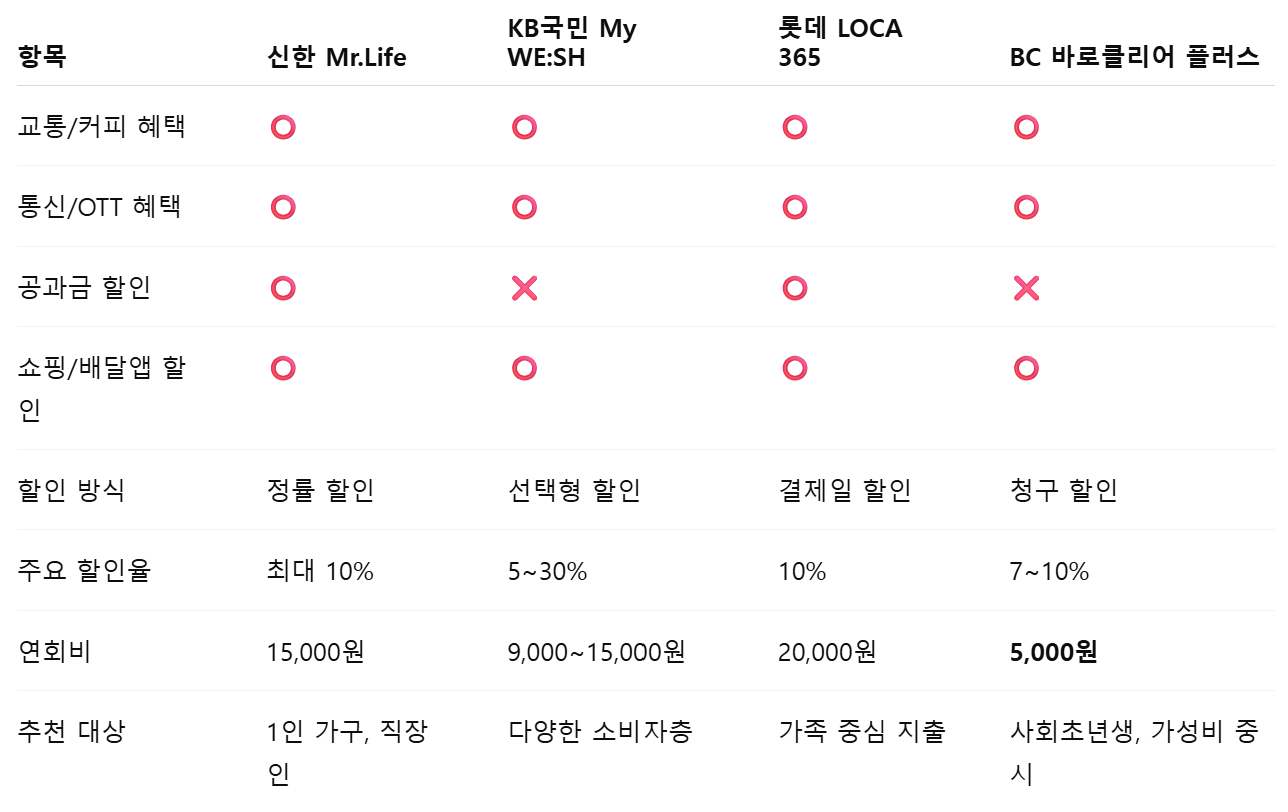 오늘은 생활비 절약에 강한 신용카드 4종을 비교 분석했습니다. 교통, 공과금, 커피, 배달앱 등 실생활에서 할인 혜택을 누릴 수 있는 카드 정보를 지금 확인해 보세요.